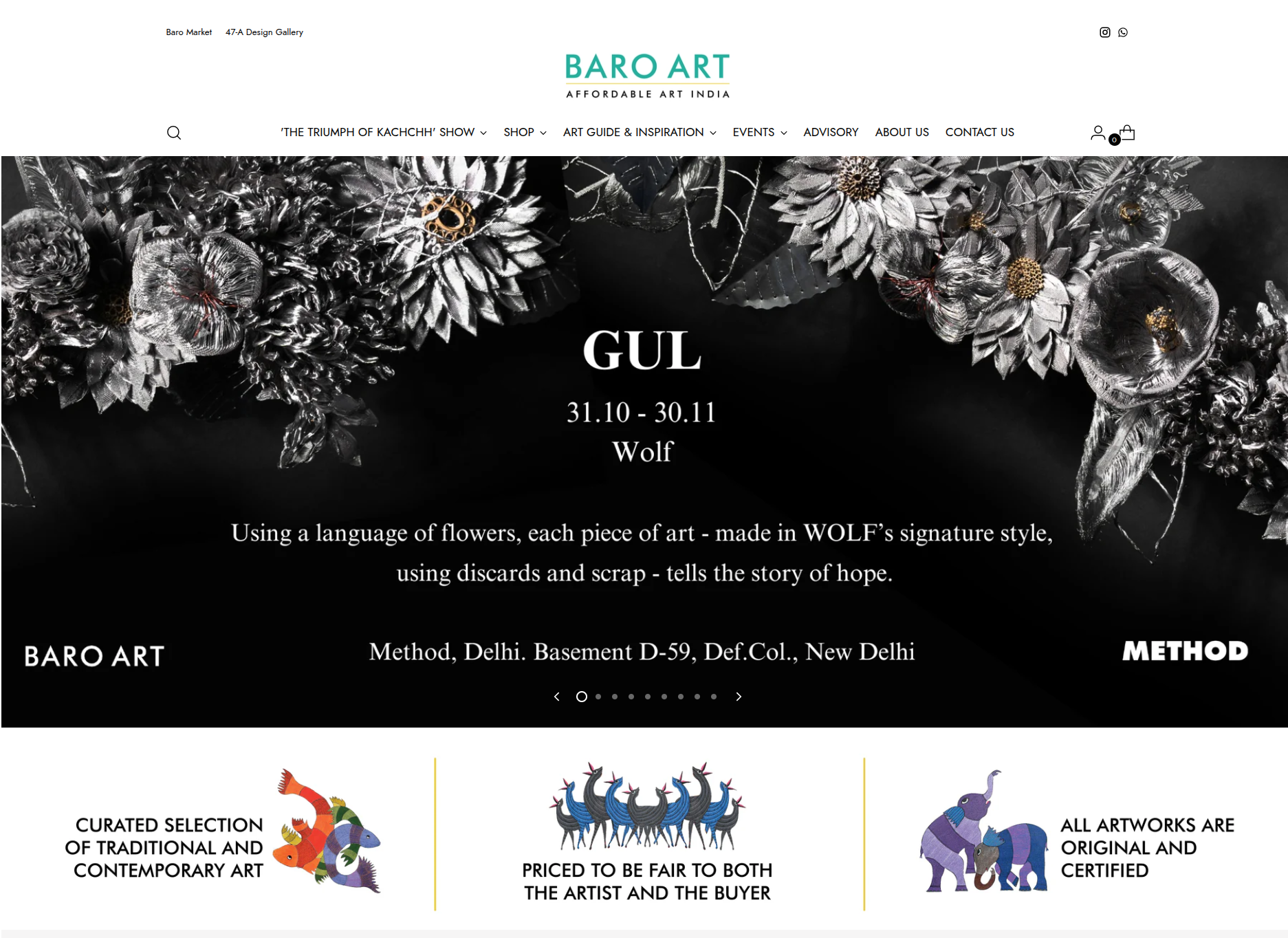 Baro Art comes to you from Baro Market, founded by Srila Chatterjee. Baro Market began life as part of the iconic Baro store in Mumbai, and curates beautiful work from artists, craftsmen and designers, for you to discover and enjoy.