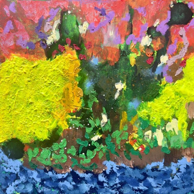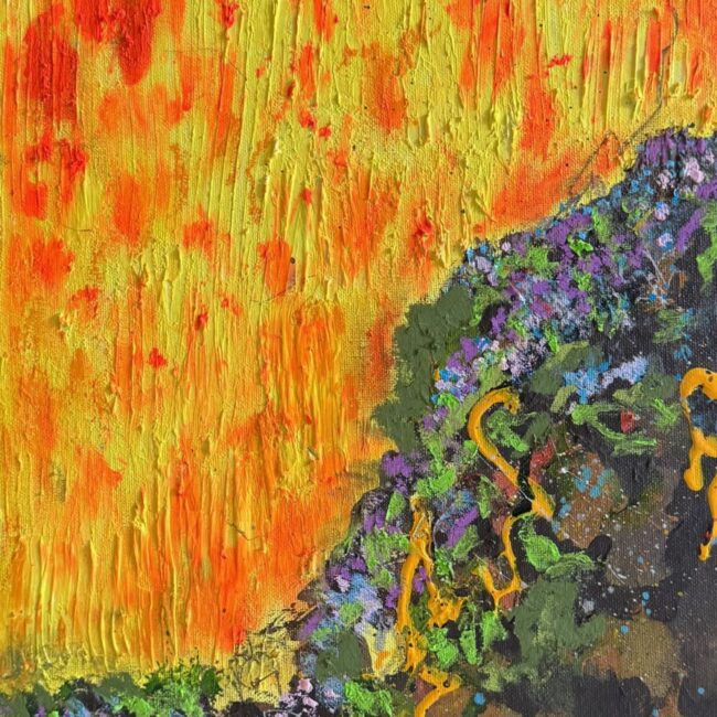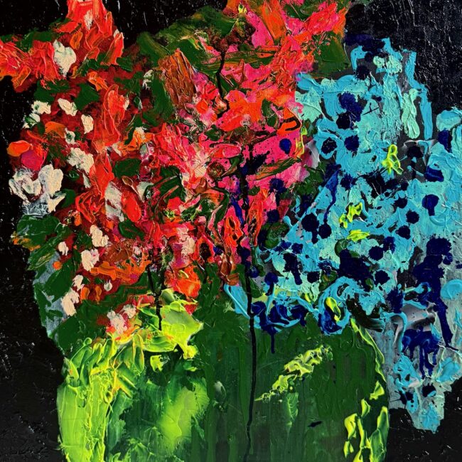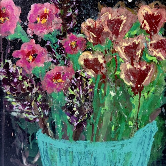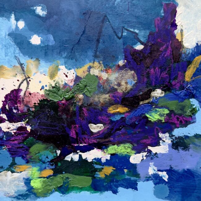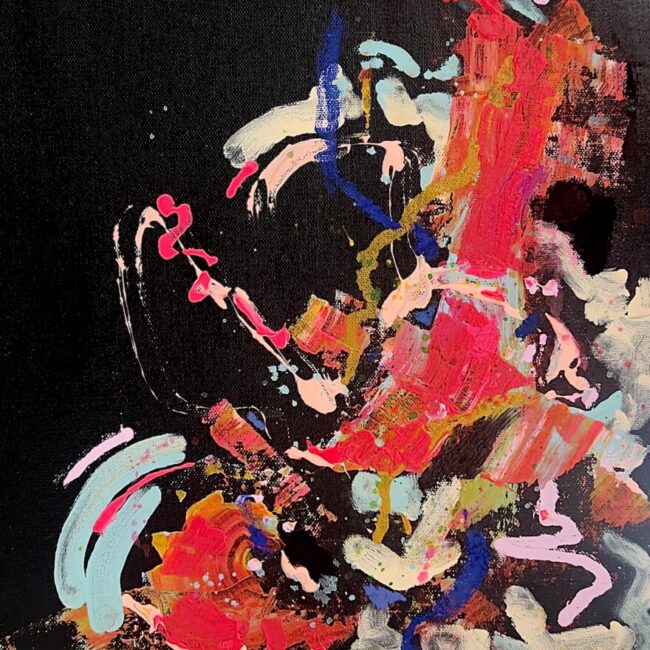 Her abstract work is a visual exploration of these inner worlds. Unlike the clarity of painting a flower, emotions are harder to picture. Whether it’s the unconscious, a fragile relationship, life’s bittersweet ironies, or the tender vulnerability of an artist’s heart.