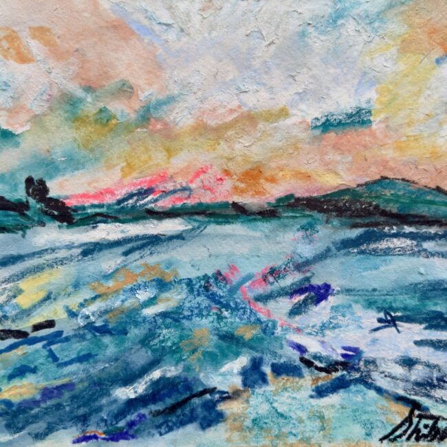 ‘Postcards to Myself’ are intimate reflections the artist gathers while immersed in nature and landscape. Quiet notes to herself about life, connection, and belonging. Each piece is a visual reminder of lessons learned and moments of clarity, a keepsake from times when the vastness of nature offered its own gentle wisdom. A memento from a moment of greater understanding.