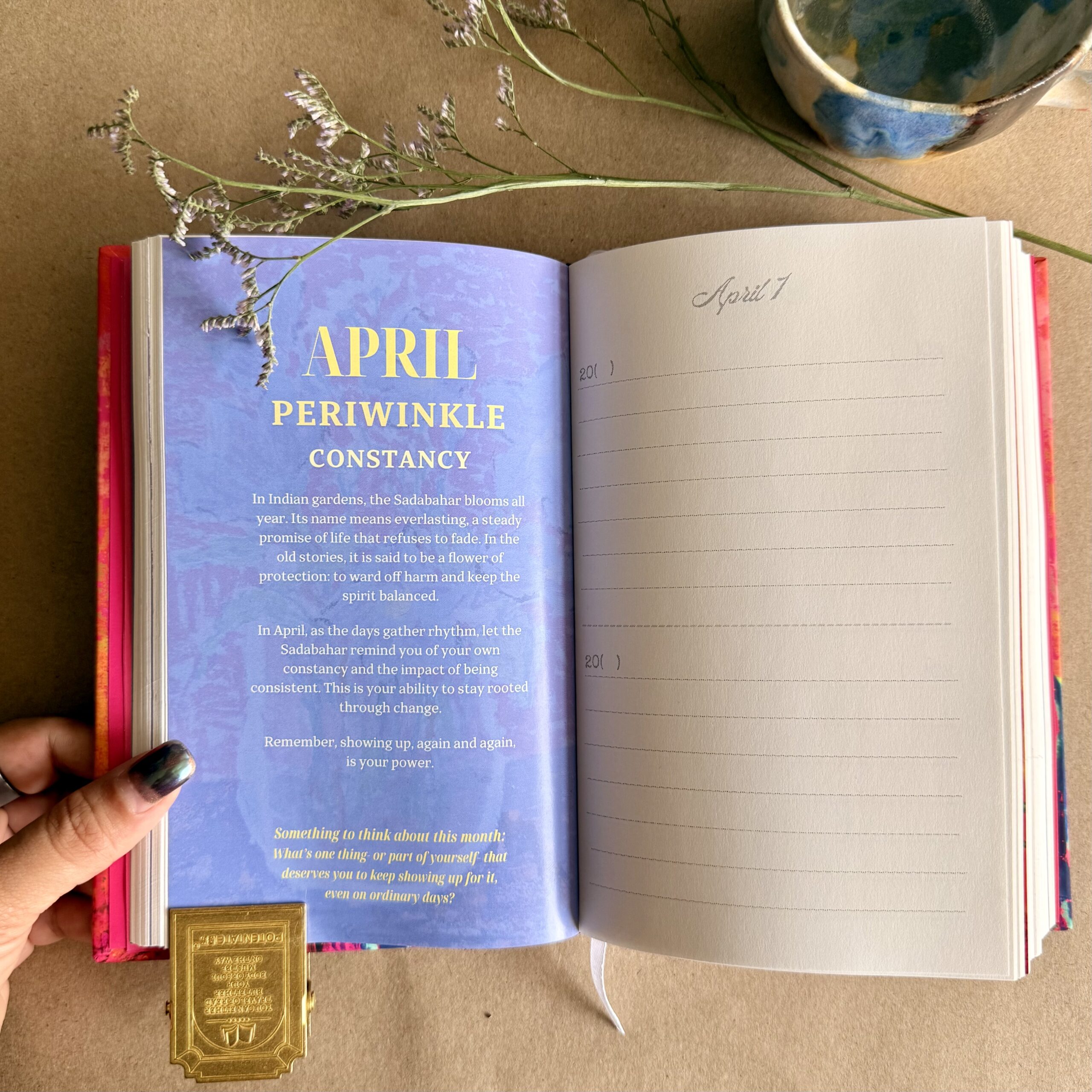 Inside: Adapted from original paintings, this memory-keeping journal features paintings of 12 gorgeous Indian flowers (and what they mean) for 12 months of the year + 1 prompt to help you reflect or journal each month.