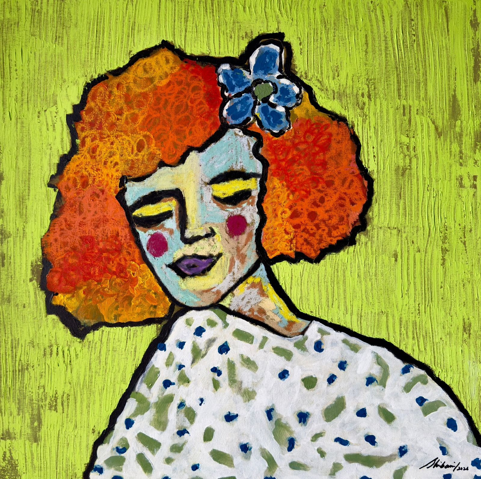 Acrylic, oil pastels on canvas