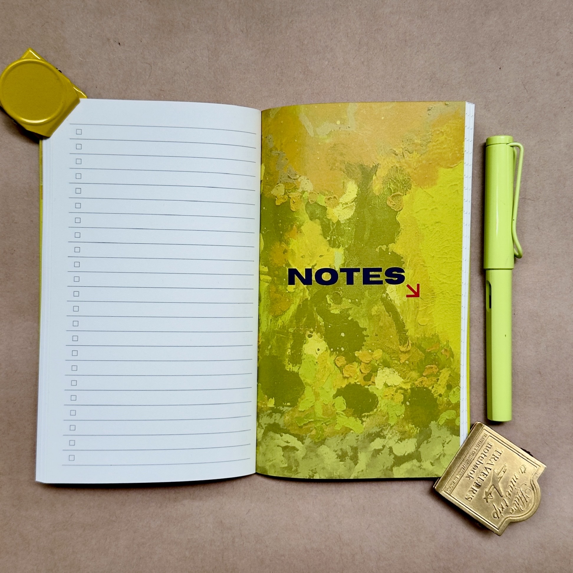 Each cover features original artwork, reimagined into a form you can carry every day. Inside, the first half is designed for your To-Do lists (with neat little checkboxes), and the second half opens up into dot grid pages for your thoughts, sketches, or notes.