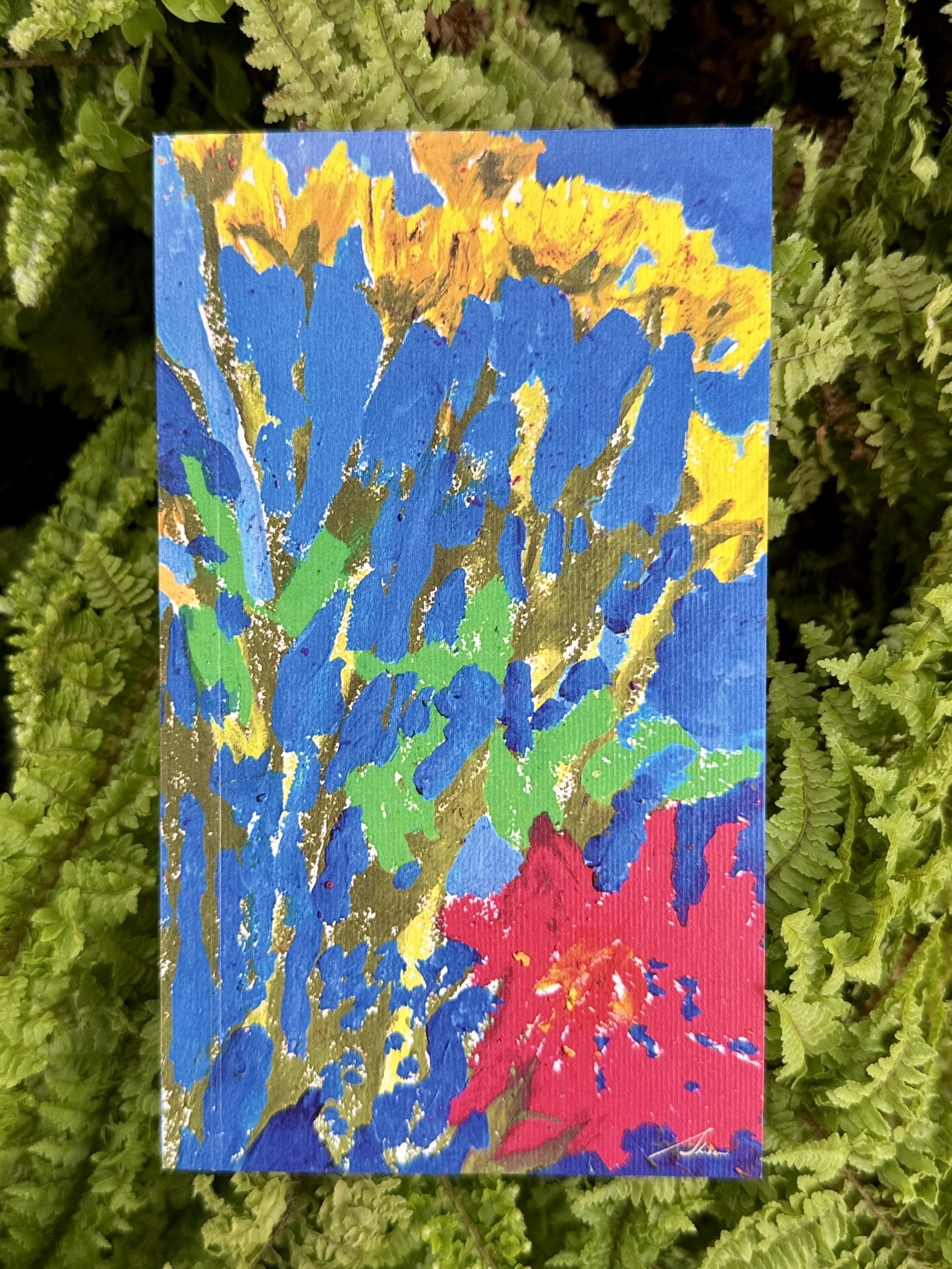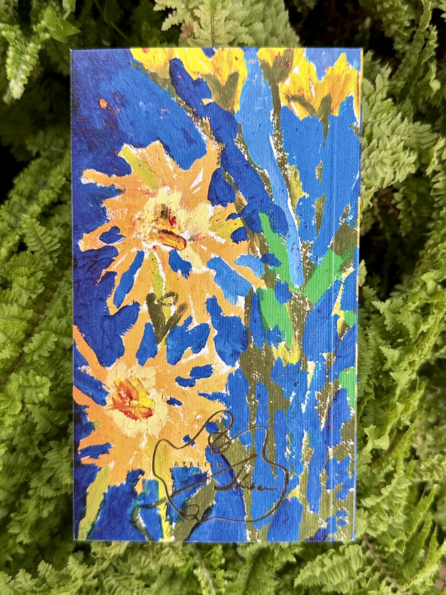 The cover of this slim notebook has been adapted from a painting called Wild Flowers Don’t Apologise