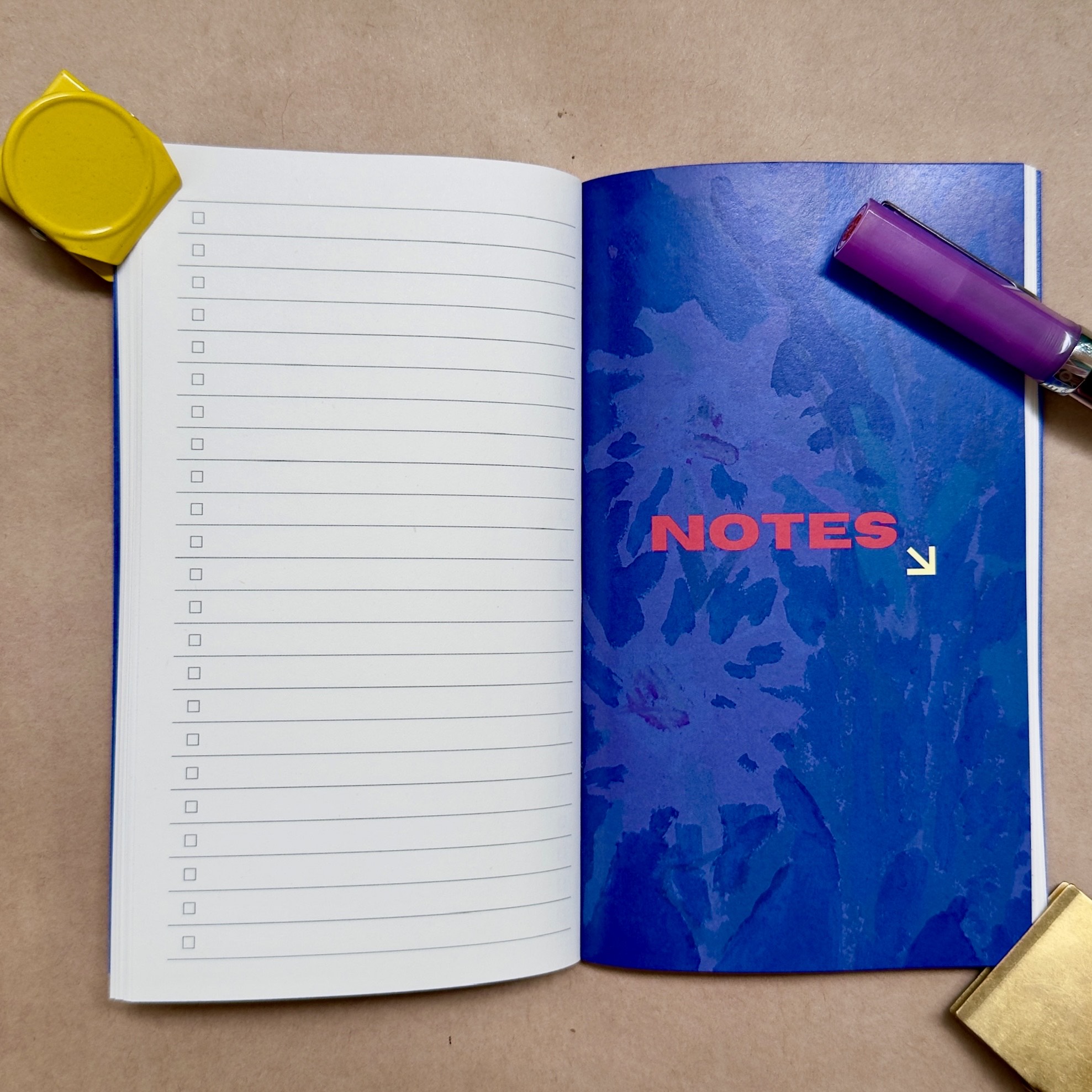 Inside pages: Divided into two parts, the first half has a running To-Do list with checkboxes and the second half is for Notes (dot grid)